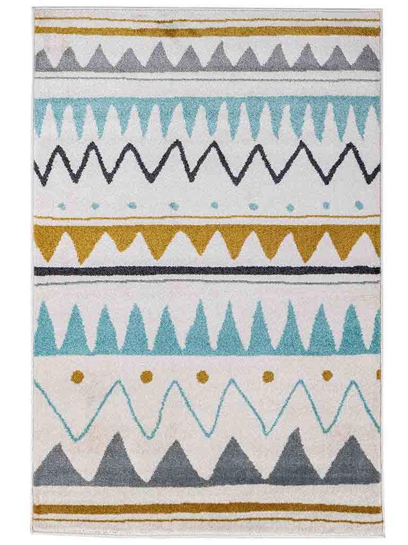 Tapete infantil de pelo corto e importación egipcia, confeccionado en materiales de alta calidad, tejido plano y textura suave. Cuenta con tejido compacto, que la convierte en una alfombra sumamente resistente que no necesita antideslizante y que además es 100% lavable. El diseño con dibujos coloridos tribales y fondo sobrio gris, la hace muy combinable con todo estilo de decoración. Alfombra rectangular perfecta para colocar en dormitorios o habitaciones de juego, ya que gracias a su texura es muy cómoda para caminar o sentarse en ella. Disponible en variedad de medidas.
